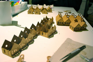 First off we are in the process of making 1000 of the mini houses. So far we have about 300 made, here is a glimpse of the construction process.
